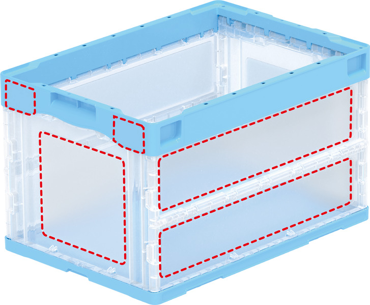 4側面及び両短辺上枠両端部にラベル剥離用線シボ面有