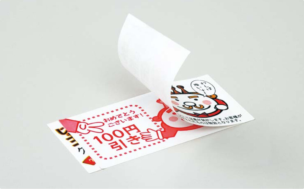 剥がしやすい、部分のり加工を施しています。その場で当たり外れがわかるスピードくじやキャンペーンの応募券ラベルなどに活用できます。