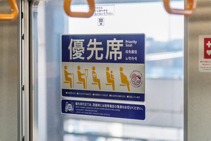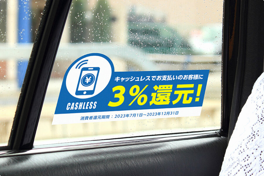雨に強くはがれにくい製品のため、ガラス窓や自動ドアなど、外気に接する場所への貼り付けに適している商品です。バスやタクシーなど公共交通機関にも導入されている製品です。
