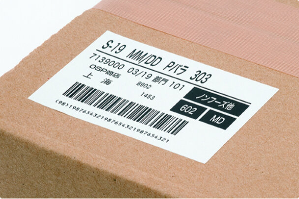 サーマルラベルとは、感熱紙を使用し、紙に直接熱をかけて黒く発色させるラベルです。主に食品や物流などのラベルに使用されます。